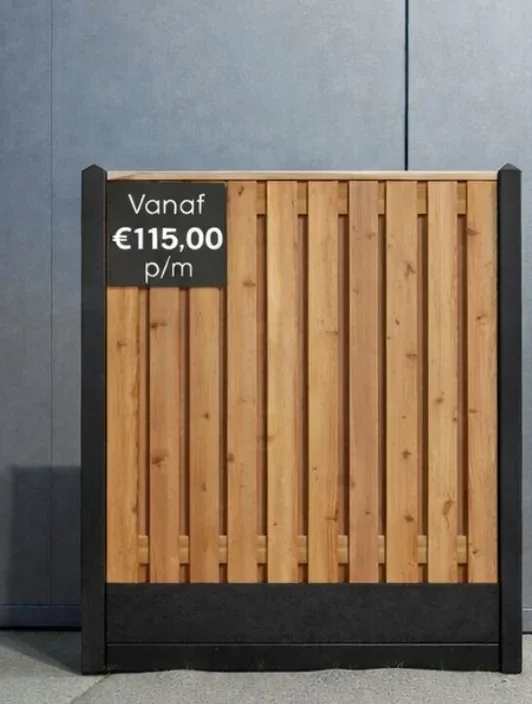 Op 10-9-2025 mooie grenen/beton schutting geplaatst door Wesley van der Hoeff en collega.